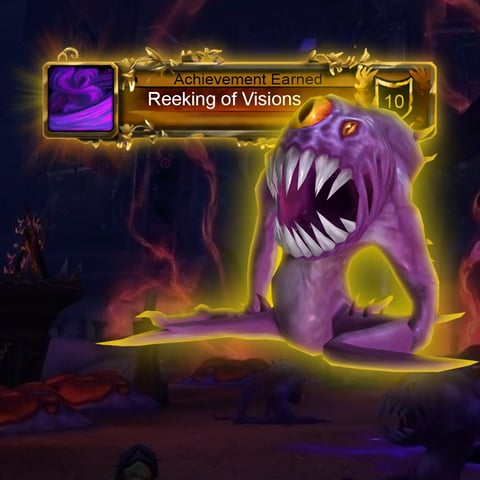 You’ll earn the Reeking of Visions achievement and the Reek pet, plus any extra Displaced Corrupted Mementos from the Horrific Visions runs.