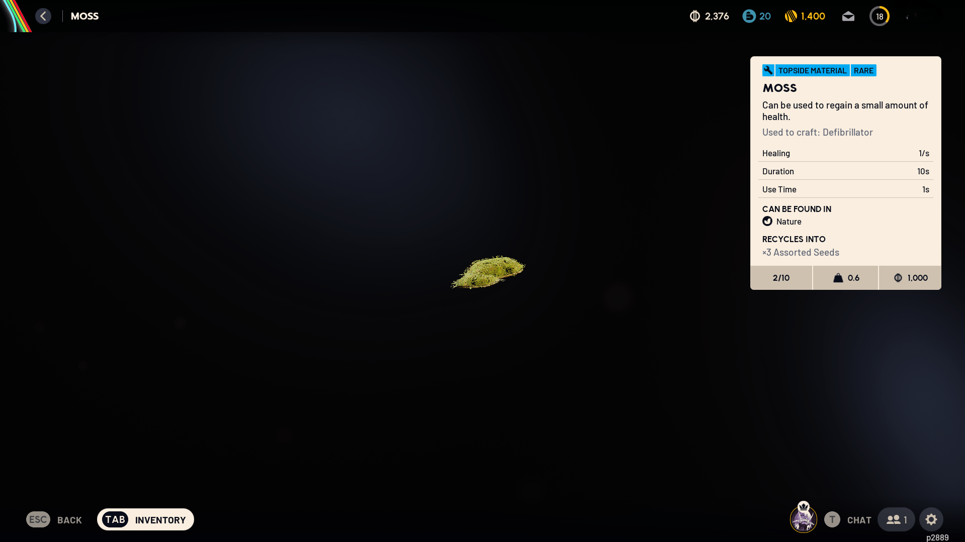 | Moss | Rare healing material | Defibrillator, Vita Shot |
