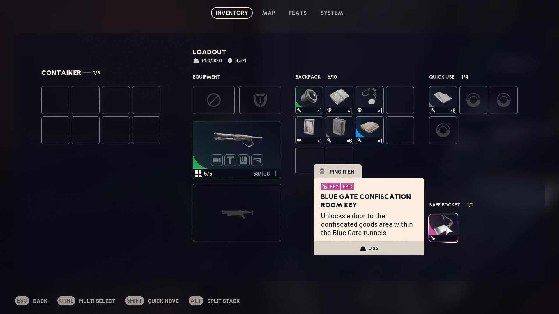 | Blue Gate Confiscation Room Key | Used to unlock rooms with loot | 100 credits | Take it if you plan a tunnel run |