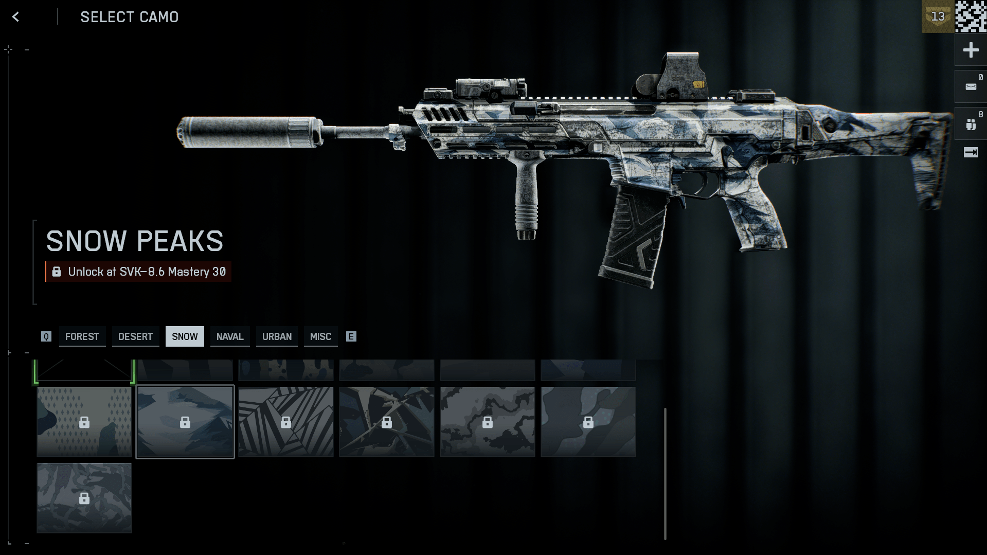 - Weapon camos have Forest, Desert, Snow, Naval, and Urban aesthetics that suit corresponding map environments.