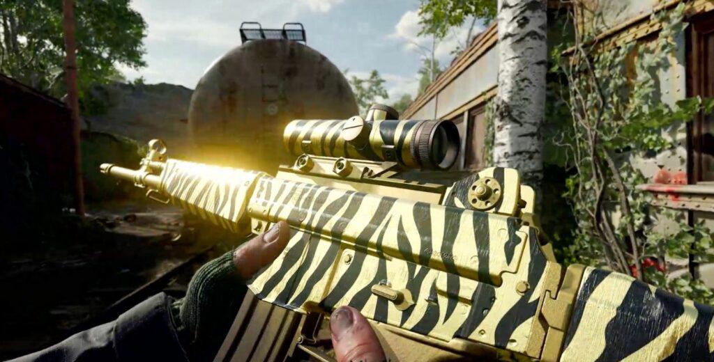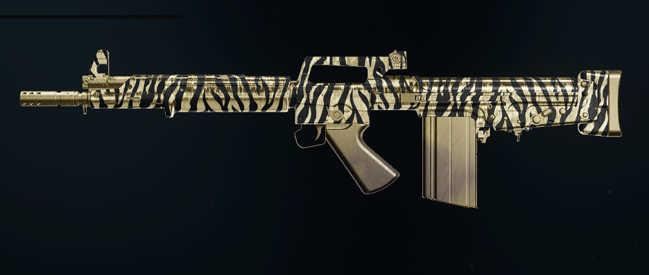 Gold Tiger Camo — To unlock this Camo, first unlock all Military and Special Camos for the weapon in Warzone. Then, complete the applicable Camo challenge to earn the Gold Tiger Camo.