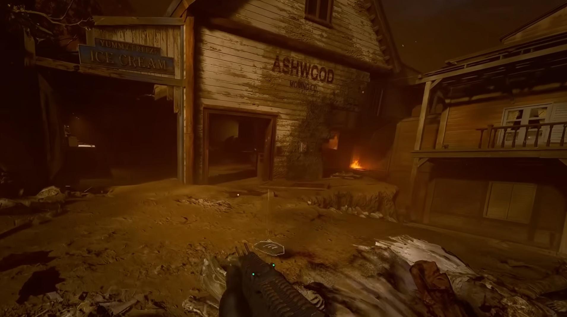 Its map, the Ashwood Survival, is based on the Ashes of the Damned round-based map and recreated as a standalone Survival experience. A town of the Dark Aether stuck in the Civil War era, with a tight layout and environmental traps all over. It is small enough that the challenge-hunting does not seem to struggle with the map structure.