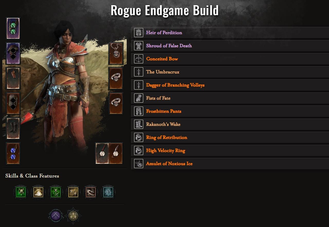 While choosing your Rogue Endgame Item Build you can stick to the idea of gathering all possible Legendary Aspects, but there are some alternatives. These items provide you with the relevant stats and increase your overall performance.