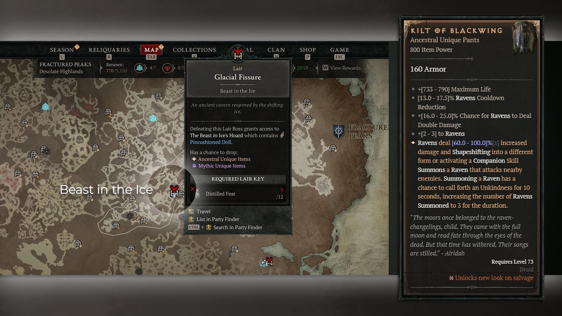 Kilt of Blackwing in Diablo IV is the Chaos Unique pants for Druids. The Beast in the Ice is the boss who drops this loot, and you can find it in its lair in Glacial Fissure. To get Diablo 4 Kilt of Blackwing in Season 10, take 12 Distilled Fear, farmed from Nightmare Dungeons, to summon The Beast in the Ice in its lair. Also, you can skip the process of farming summoning materials and killing the boss with our team taking down The Beast in the Ice for you.
