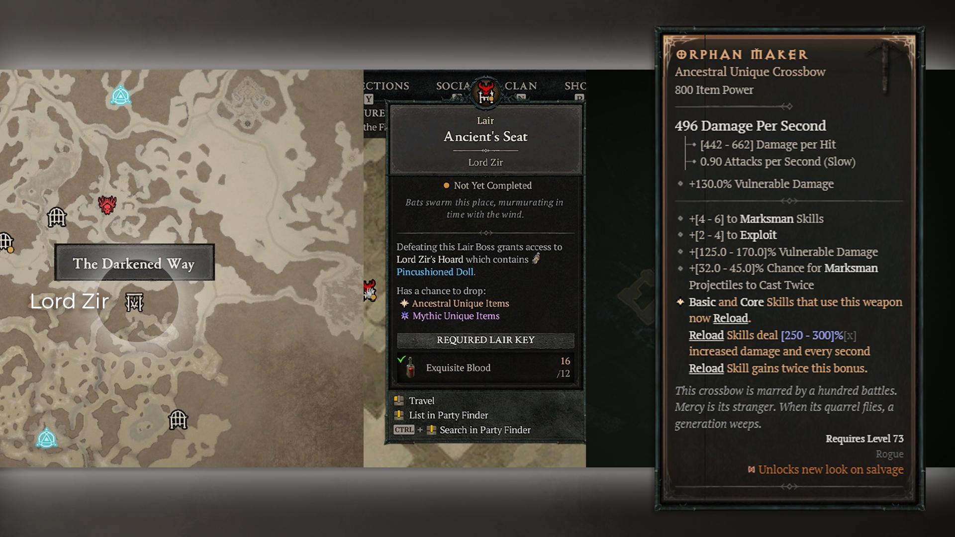 Rogues could benefit from Orphan Maker Chaos Unique item in Diablo 4 Season 10. This crossbow can be found after taking down Lord Zir, who awaits at the Ancient’s Seat.