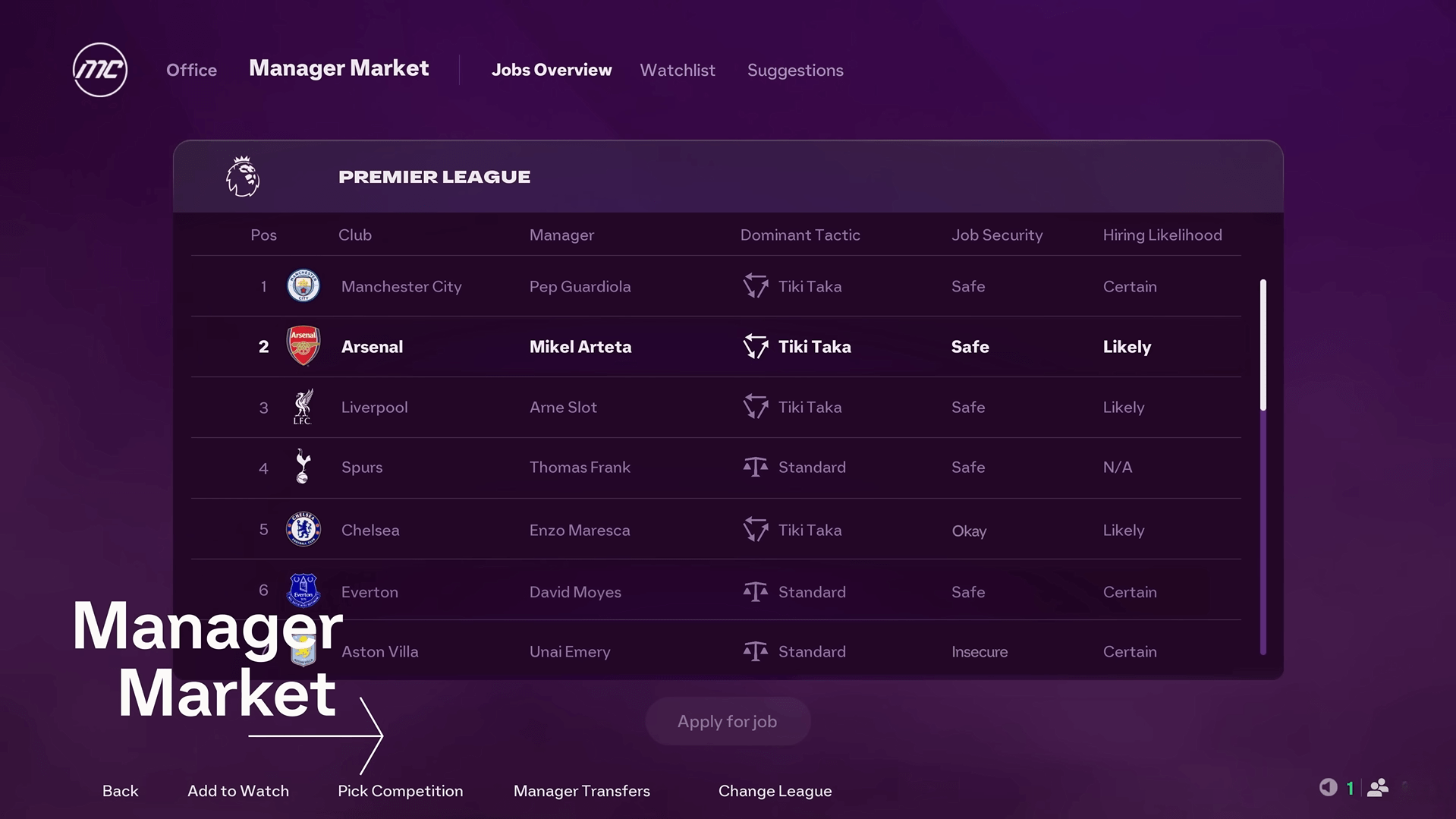 - Manager Live Challenges — brief, scenario-based activities based on actual football situations.
