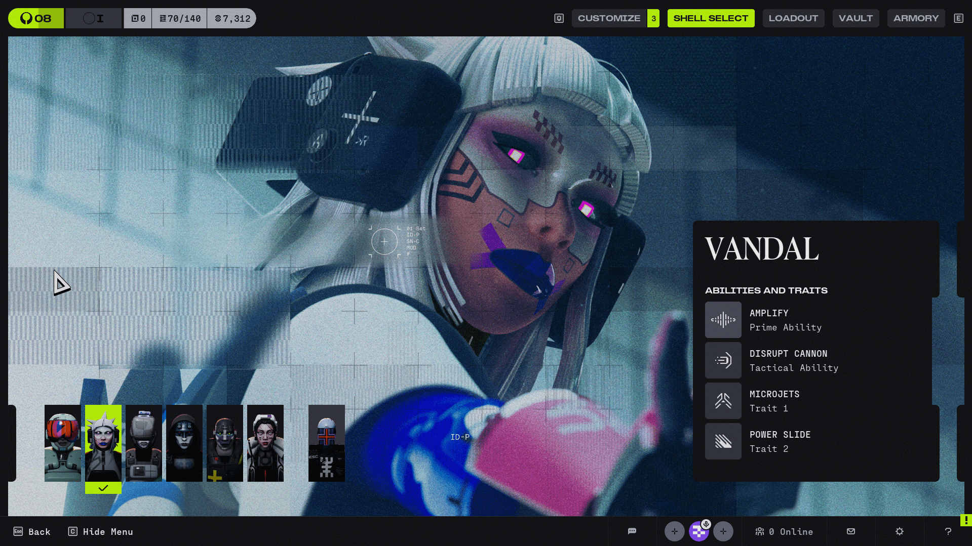 Its kit is built around movement and tempo. Amplify boosts movement speed, weapon handling, and lowers Heat from movement abilities for a short time, which makes pushes and repositioning much cleaner. Disrupt Cannon works as both damage and utility, since it can blast enemies out of cover or create space during a fight, while Microjets and Powerslide give Vandal some of the best movement options in the game.