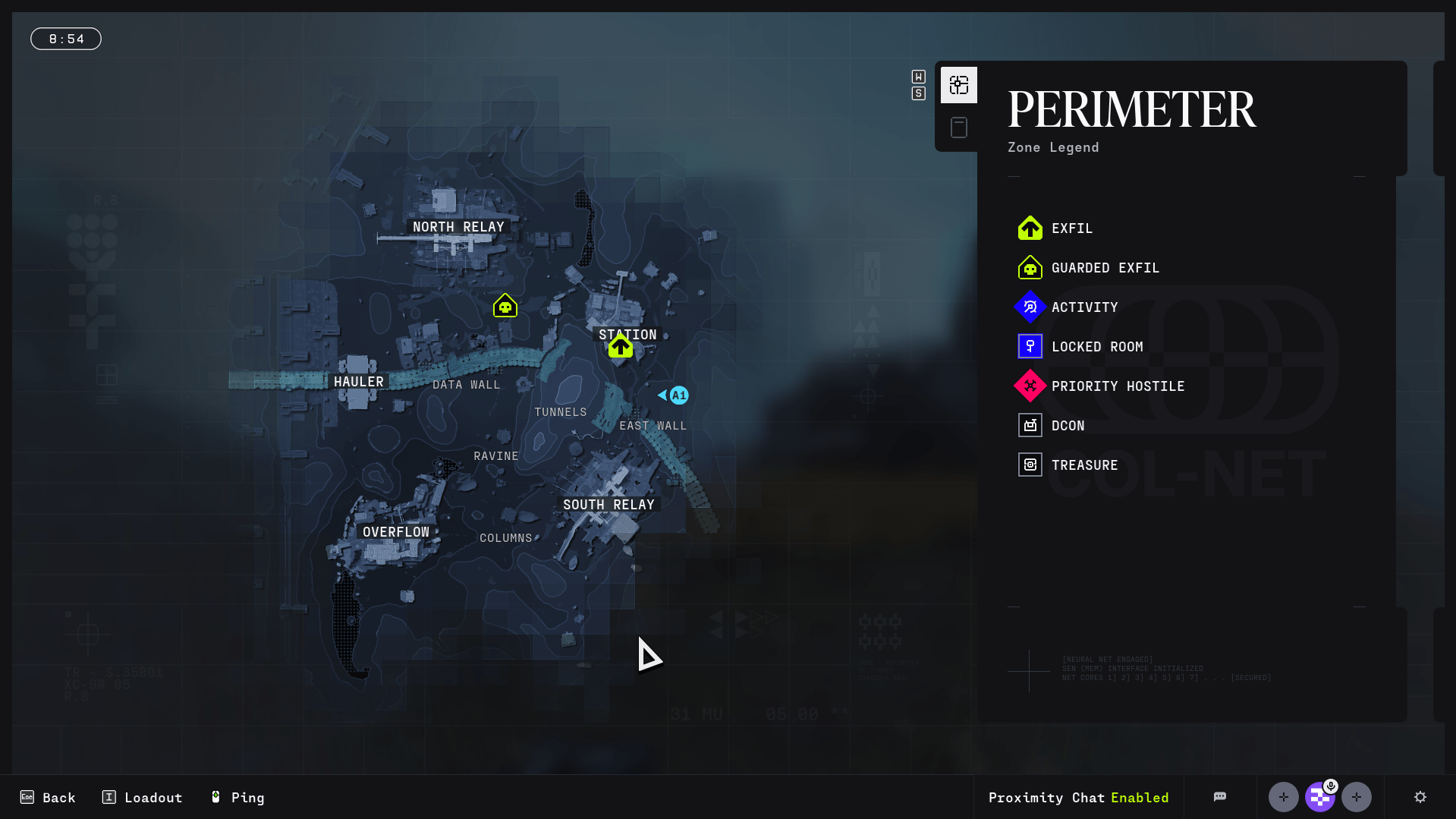 The Marathon Perimeter Map is rather easy to navigate if one knows the essential landmarks. It can be divided into five essential areas: North Relay, Station, South Relay, Overflow, and Hauler. Around these areas, there are smaller transition areas: Data Wall, Tunnels, Ravine, East Wall, and Columns. These areas play a crucial role in navigating safely and efficiently.