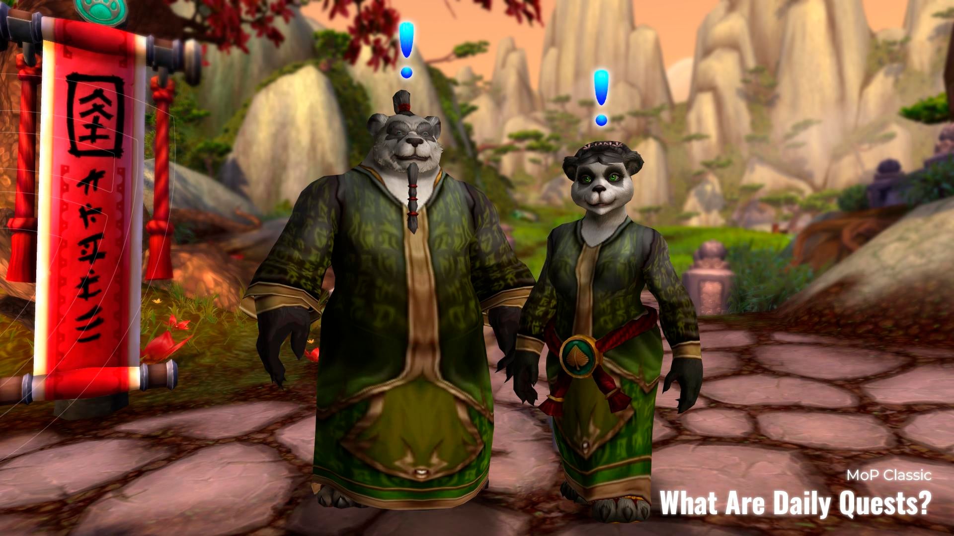 In Mists of Pandaria Classic, Dailies or Daily Quests are day-to-day activities, often provided by the in-game factions, and that can reward you with currency, including gold or Valor, and other useful items. Why do dailies matter in MoP Classic? Daily quests are not just quests to fill in your time in the game, but rather an instrument to gain reputation with major Pandaria factions, such as the Dominance Offensive, Golden Lotus, Shado-Pan, August Celestials, etc.