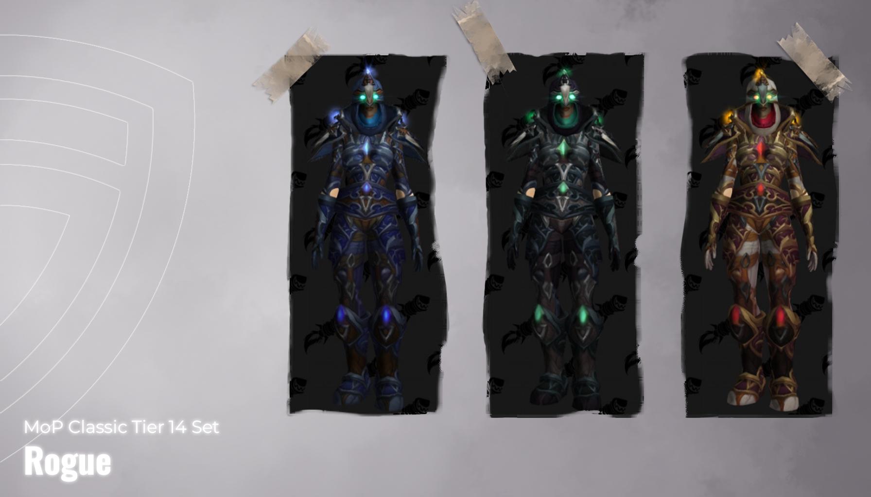 Rogues in MoP Classic wear the Battlegear of the Thousandfold Blades, a set that empowers all three specs.