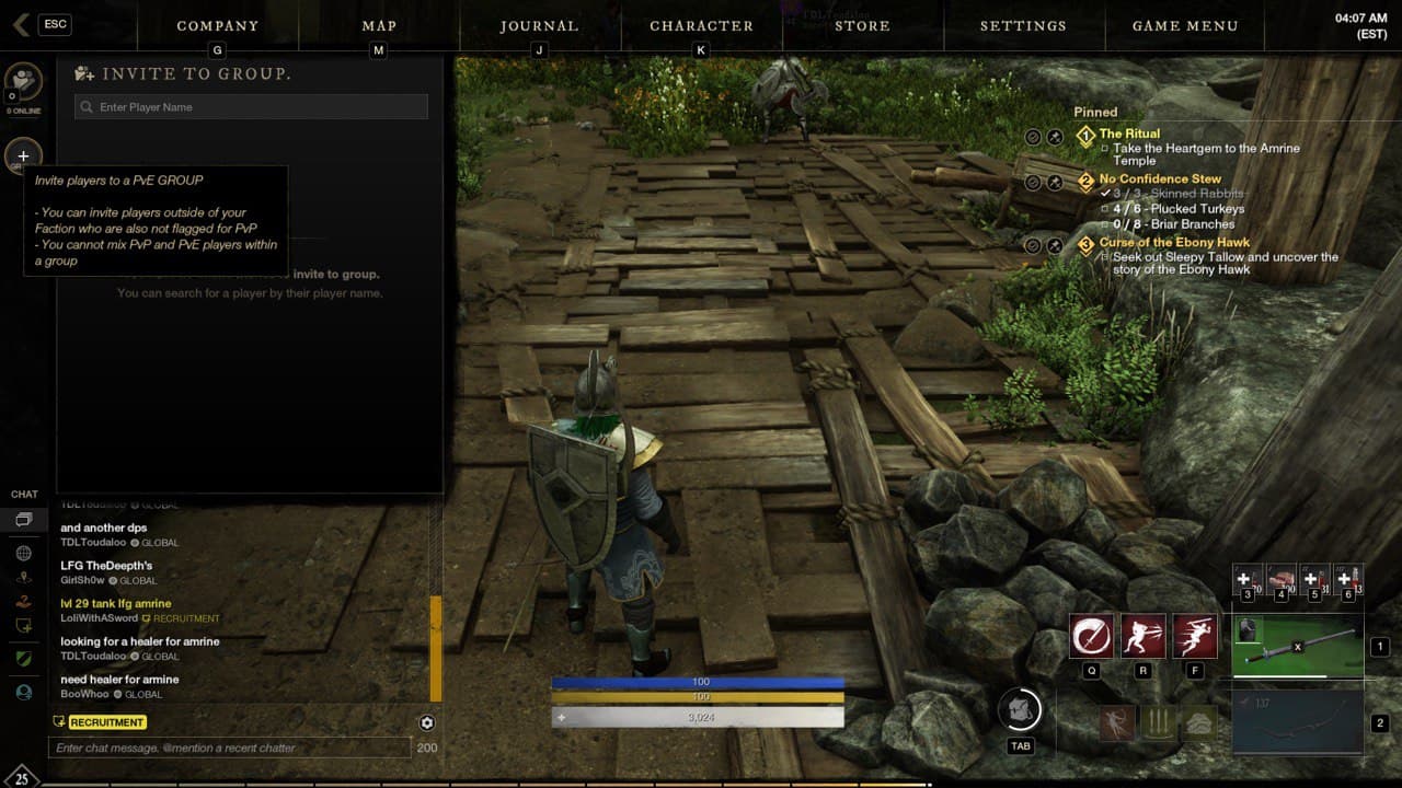 In the chat there is a special section RECRUITMENT, highlighted in yellow, it allows you to write to the chat that you are looking for a party on Amrine and your message will be highlighted in yellow so that interested players can write to you in DM (direct messages) to unite in the group.