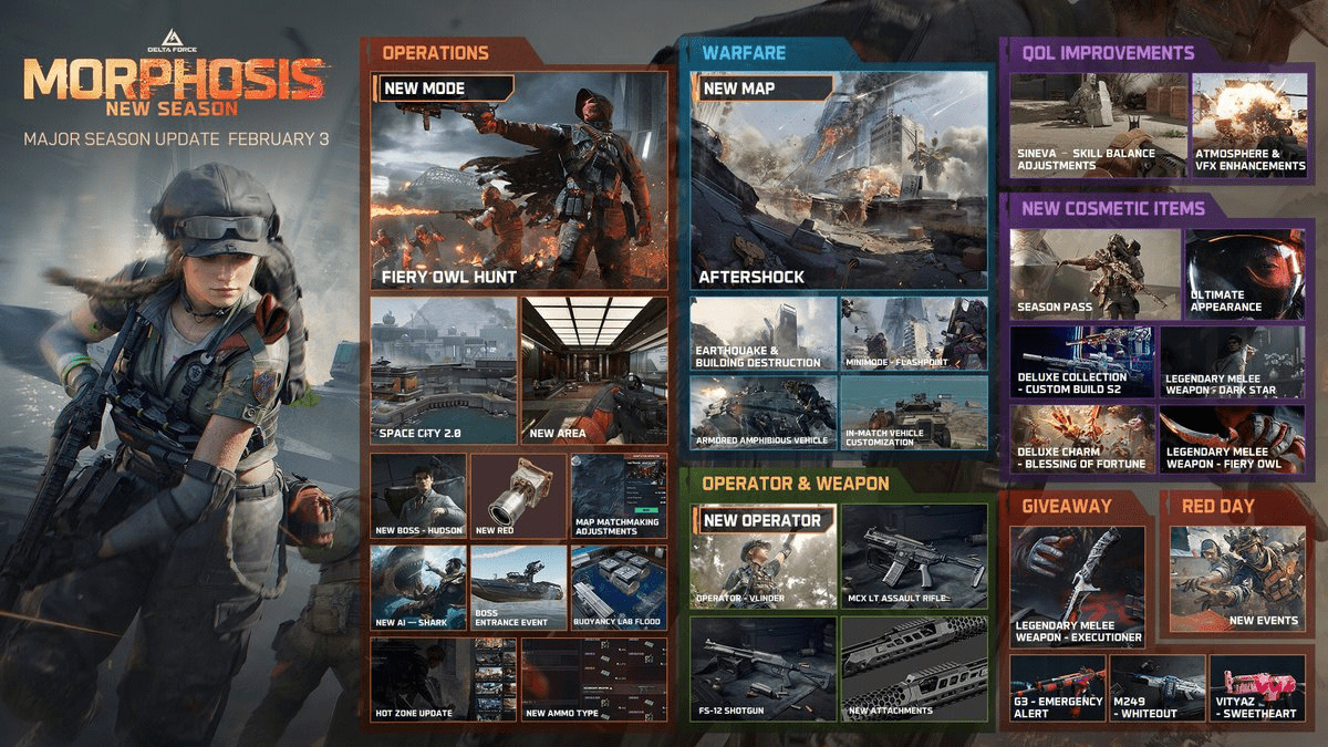 Delta Force Season 8 Morphosis officially launches on February 3. The new season marks another major update for the game, bringing fresh content across Operations, Warfare, and overall progression. The launch continues Delta Force’s seasonal cadence, with a focus on expanding core modes rather than introducing radical system changes.