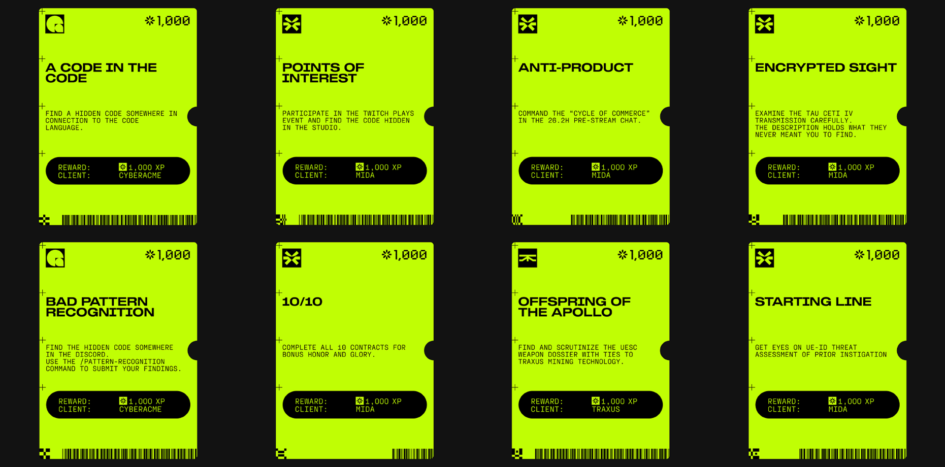 - Complete contracts in the official Discord for XP and unlockable codes.