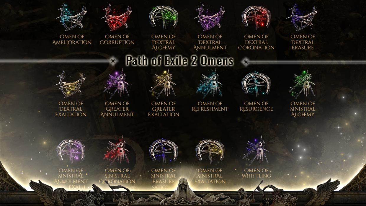 Another interesting resource that allows you to alter your gear and modify it is Path of Exile 2 Omens. Omens are also reffereted to as meta-modifiers, as they work not directly on your items, but on the Orbs that you are going to use on this item.
