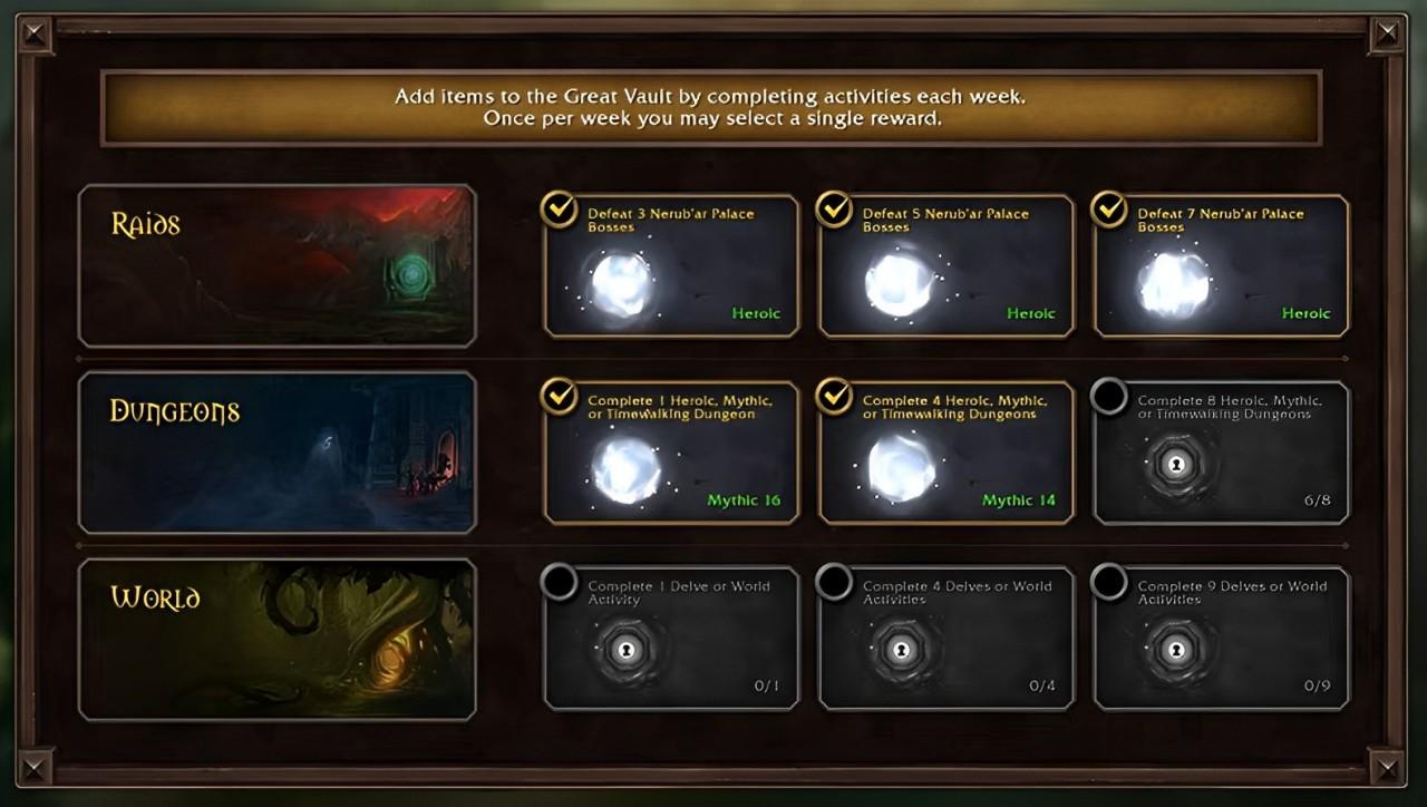 📌 Note: Great Vault rewards do not include PvP anymore, thus, completing World Activities and Delves will now grant you items from the Vault.