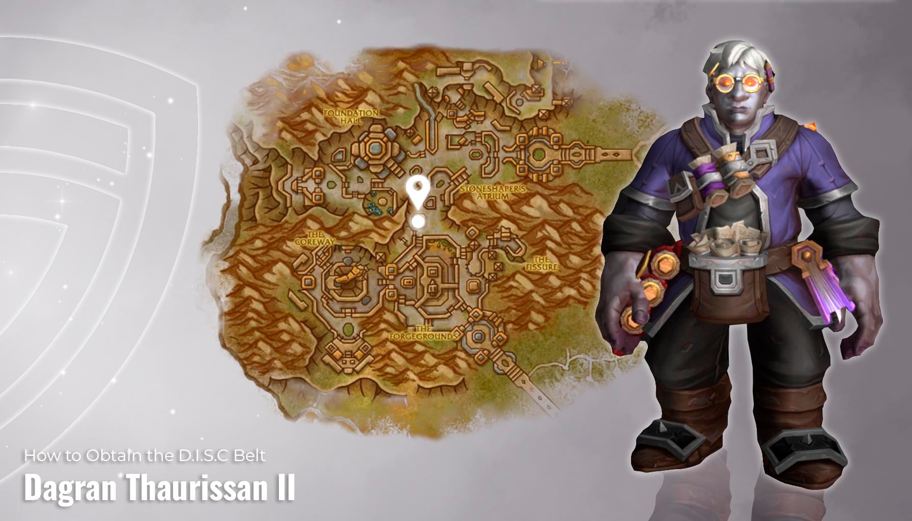 To obtain the WoW D.I.S.C. belt, you need to run Overcharged Delves, completing related quests. Head to Dagran Thaurissan II in Dornogal (/way 47.99 43.50) to pick up your first quest. There are 5 quests in total that will help you to unlock the D.I.S.C. Belt: