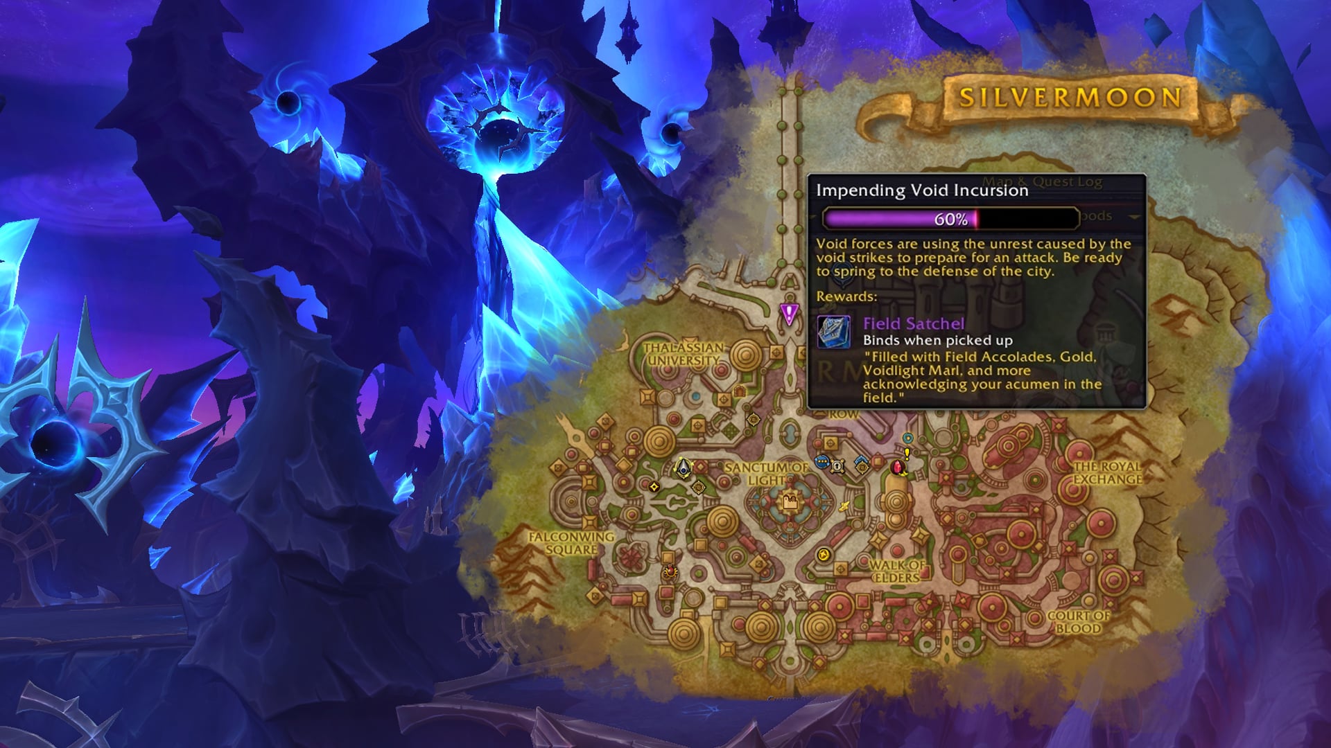 - Silvermoon City — the hub for the questline and the main Void Assaults vendors.