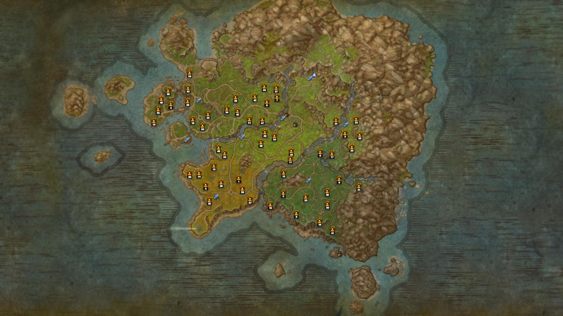 There are 8 flight points in the Razorwind Shores that allow easier traveling around the map. Also, there’s a portal to Orgrimmar, located in the middle of the map, North to the majority of the plots.
