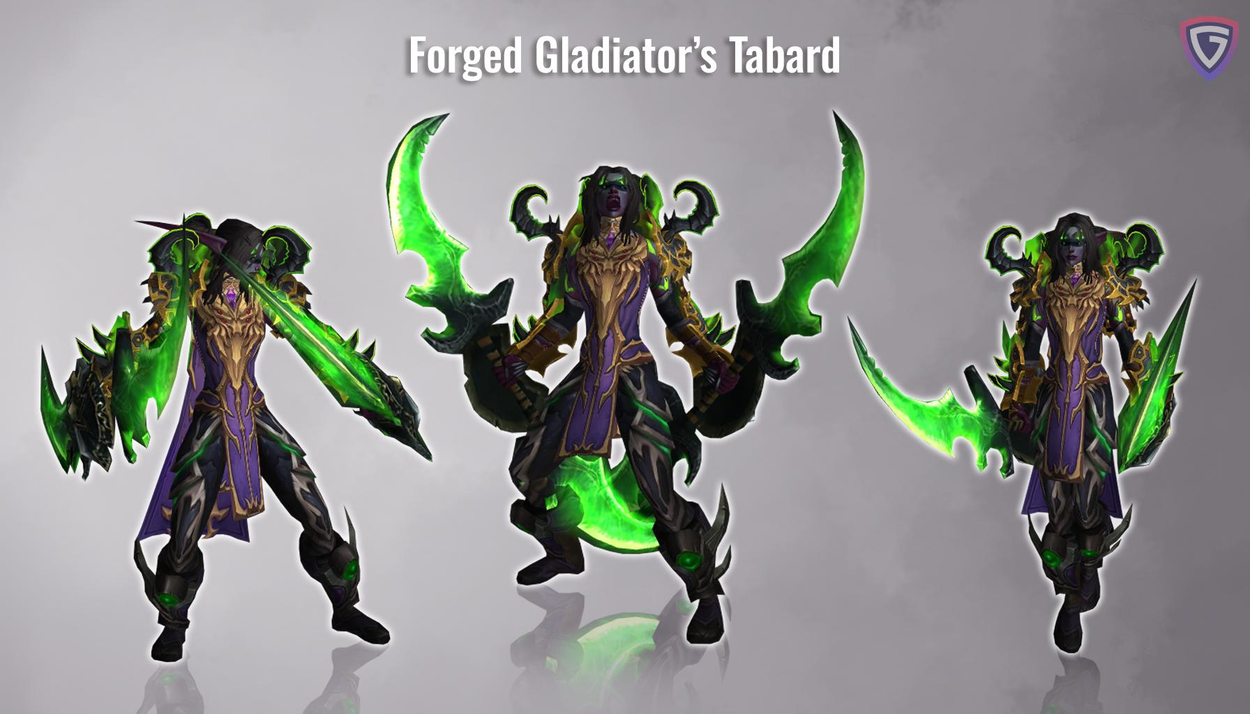 - ‘Forged Gladiator’ Title — End The War Within Season 1 in the top 0.1% of the 3v3 arena ladder (requires 150 games won in The War Within Season 1).