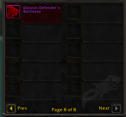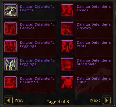 Item Price Type Dalaran Defender’s Drape 2000 Residual Memories Cloak Dalaran Defender’s Cape 2000 Residual Memories Cloak Dalaran Defender’s Cloak 2000 Residual Memories Cloak Dalaran Defender One-Handed Weapon
